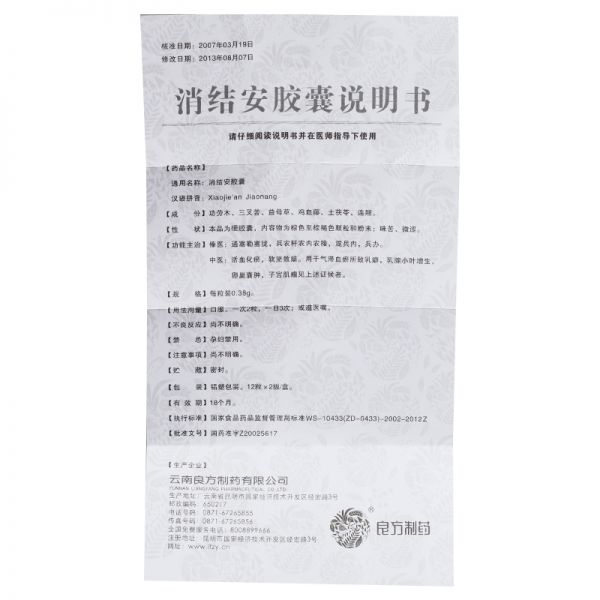 消结安胶囊0.38g*24粒/盒