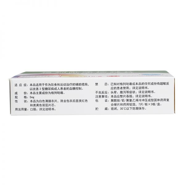 • 格列吡嗪控释片5mg*7片*3板/盒