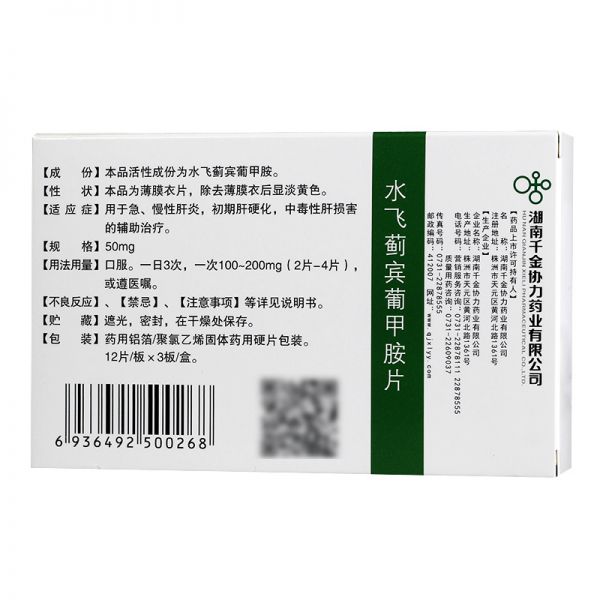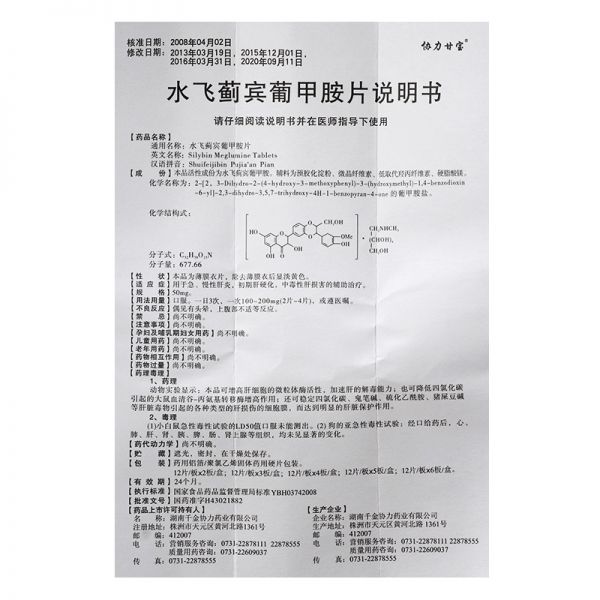 • 水飞蓟宾葡甲胺片50mg*36片/盒