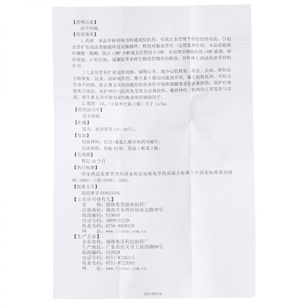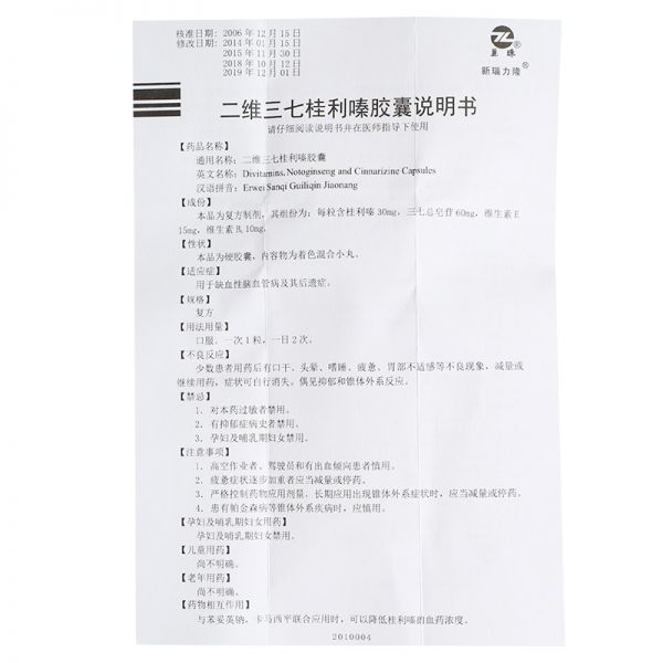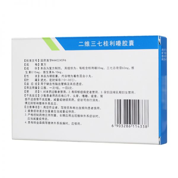 • 二维三七桂利嗪胶囊10粒