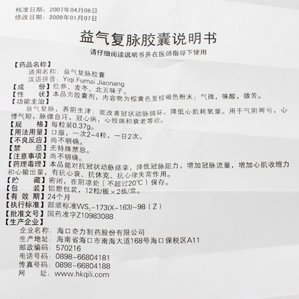• 益气复脉胶囊0.37g*24粒