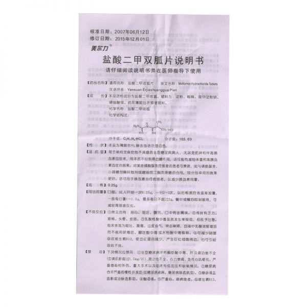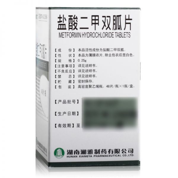 • 盐酸二甲双胍片0.25g*48片/瓶