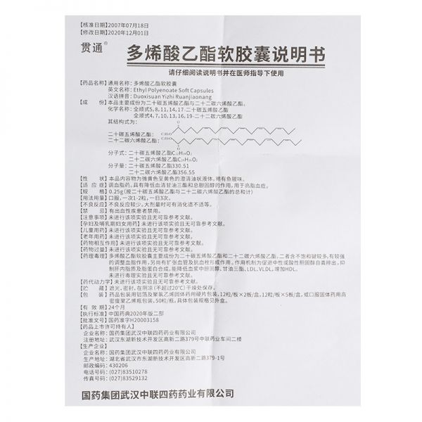 • 贯通 多烯酸乙酯软胶囊0.25g*60粒