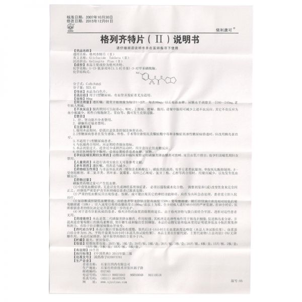 • 格列齐特片(Ⅱ) 80mg*80片/盒