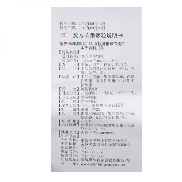 燕峰 复方羊角颗粒 8g*10袋