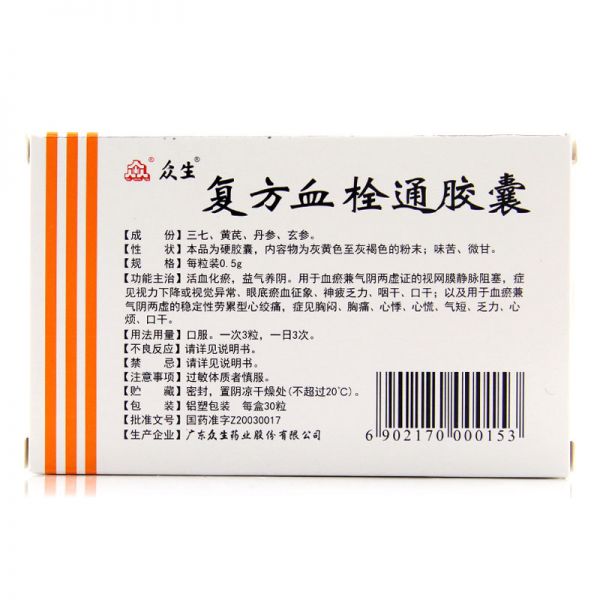• 众生 复方血栓通胶囊 0.5g*30粒