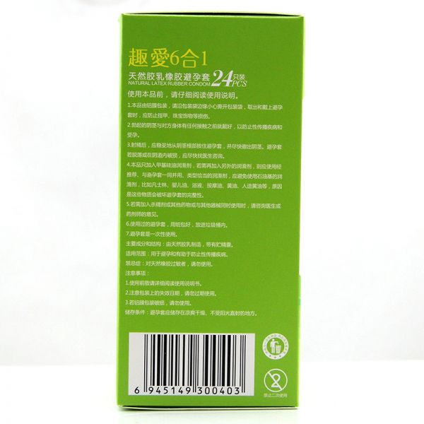 天然胶乳橡胶避孕套(多乐士趣爱6合1)