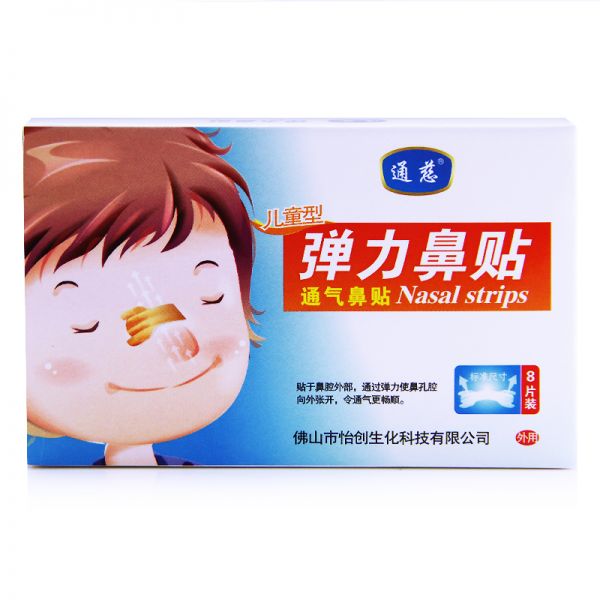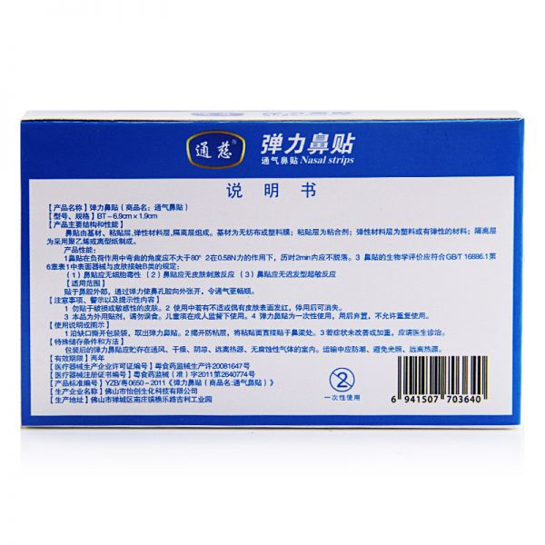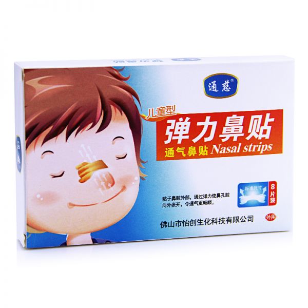 贴于鼻腔外部,通过弹力使鼻孔腔向外张开,令通气更畅顺