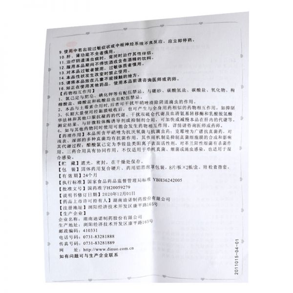 用于细菌性阴道病、霉菌性阴道病、滴虫性阴道炎、以及混合感染性阴道炎