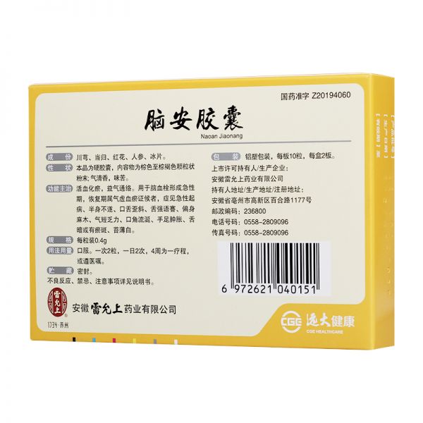 脑安胶囊 安徽雷允上药业有限公司 0.4g*20粒