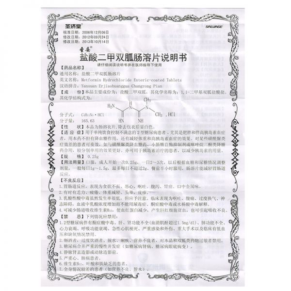 • 盐酸二甲双胍肠溶片0.25g*60片