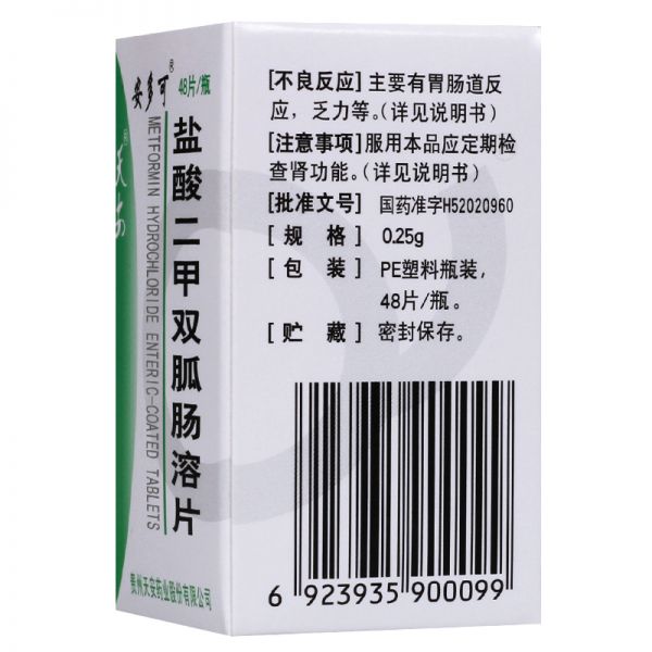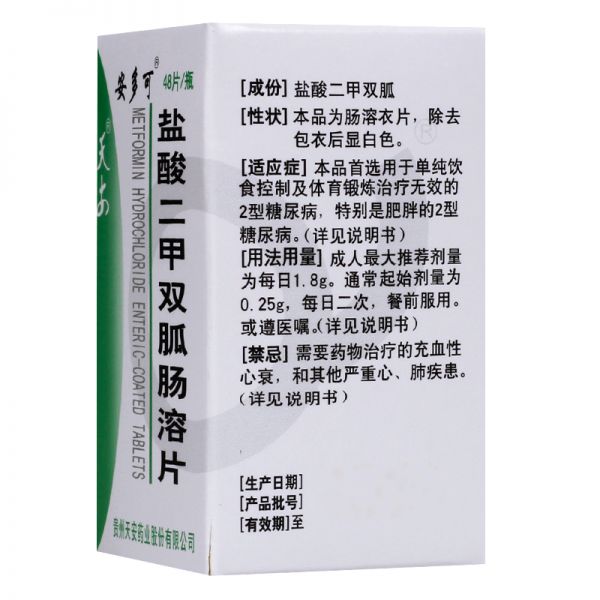 盐酸二甲双胍肠溶片0.25g*48片