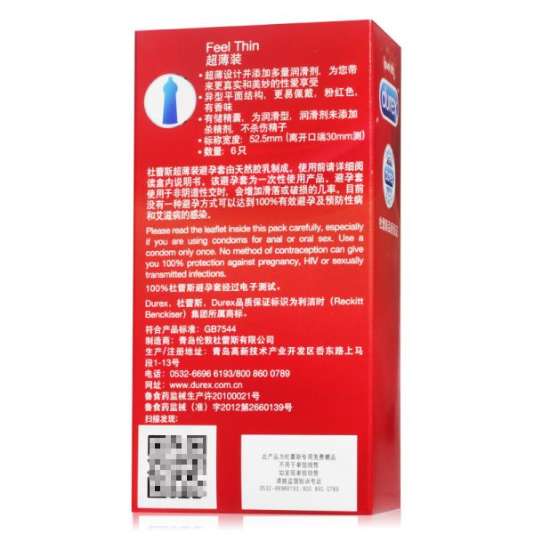 天然乳胶橡胶避孕套(杜蕾斯) 6只超薄