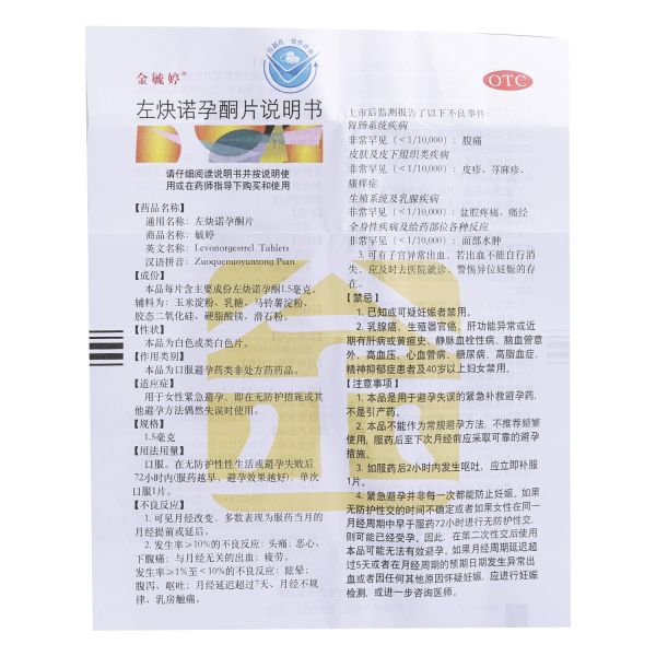 金毓婷 左炔诺孕酮片1.5mg*1片/盒