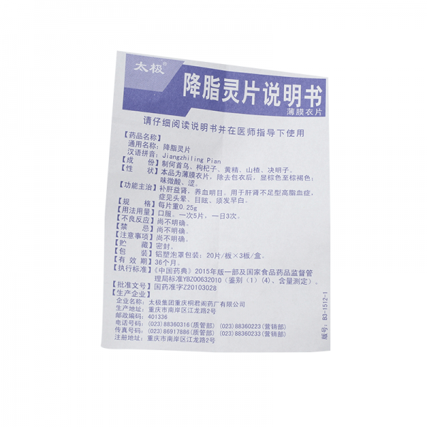 • 太极降脂灵片 0.25g*60片