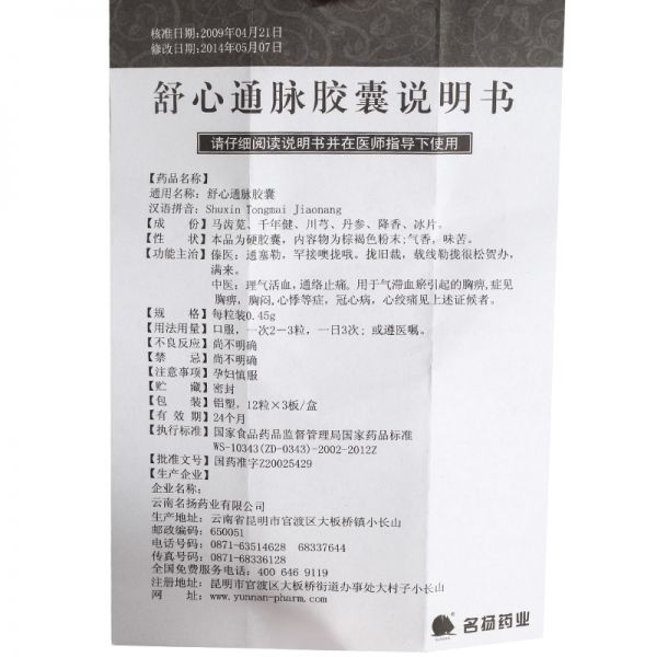 名扬药业 舒心通脉胶囊0.45g*36粒