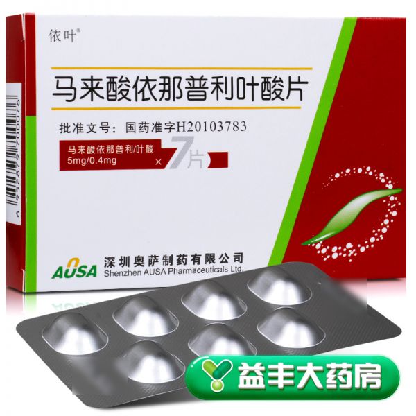 依叶 马来酸依那普利叶酸片5mg:0.4mg*7片/盒