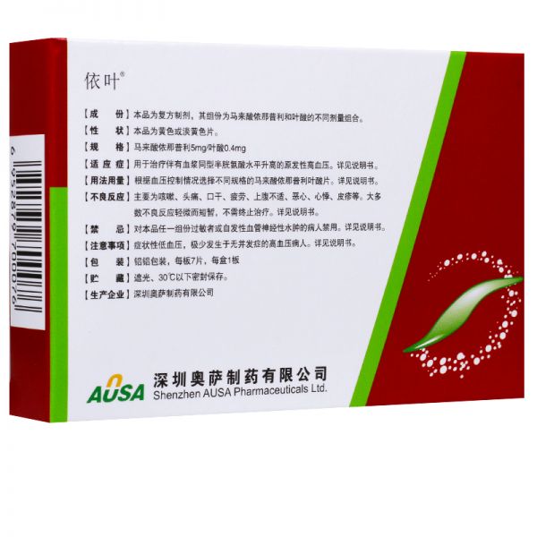 • 依叶 马来酸依那普利叶酸片5mg:0.4mg*7片/盒