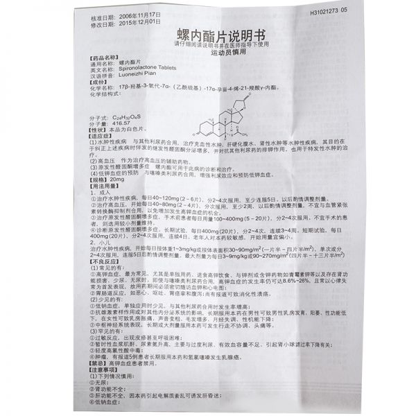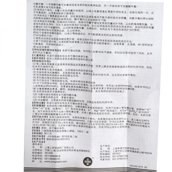 • 螺内酯片20mg*100片