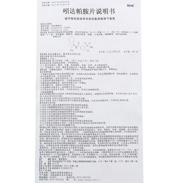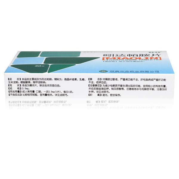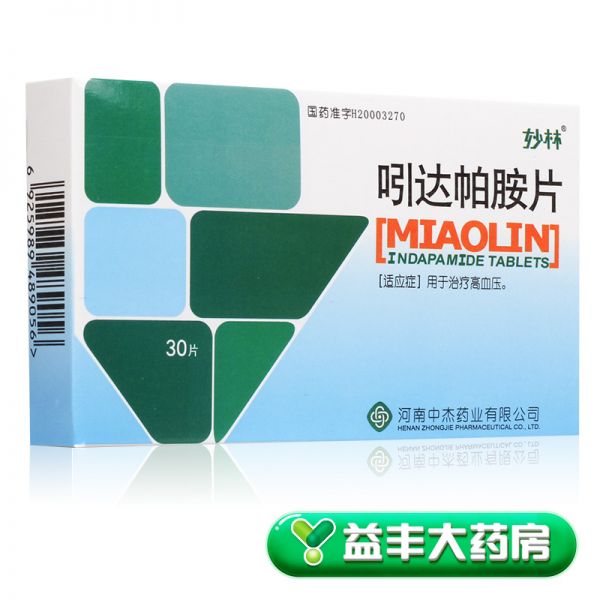 吲达帕胺片(妙林) 2.5毫克*30片 河南中杰药业有限公司2.5mg*30片
